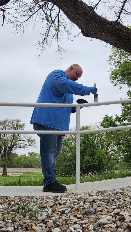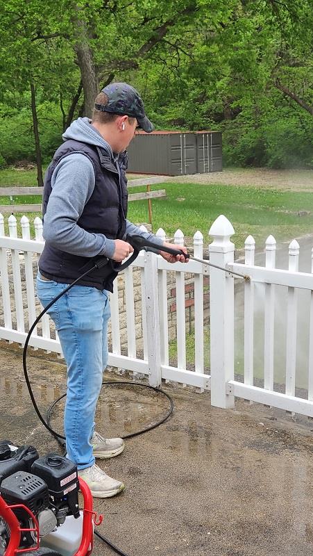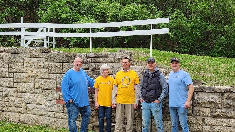 On April 26, Rotarians from the Manhattan and Konza Rotary Clubs volunteered at Homestead Ministries—a safe haven for women who have left the sex trafficking industry or experienced domestic violence. In under three hours, they power washed a fence, painted a railing, swept out a garage, mowed, cleared limbs and brush, cleaned out a van, and completed other tasks.