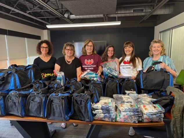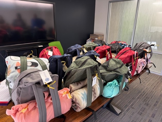 RC of Community Action Against Human Trafficking (CAAHT) used their District Grant funds to make Rotary Cares kits for women who are victims of sex trafficking and/or sexual exploitation. Members assembled duffel bags of essential needs, including clothing, body wash, hair and oral care items, and a fleece blanket. The 20 care kits will be distributed through the Intersection to Care Global Grant project that assists vulnerable women leaving incarceration.
