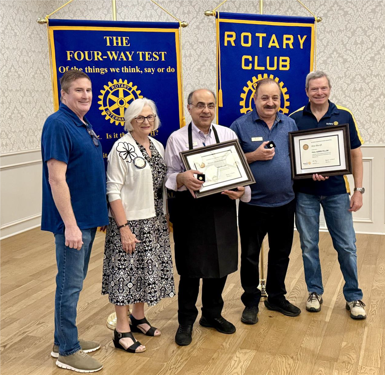 For over 10 years, Pegah’s Restaurant has been serving our club a delicious and hearty breakfast every week. Most everything is cooked on site and / or made to order. But equally impressive are their friendship, generosity and professionalism. As a recognition, each was awarded a Paul Harris Fellow from the Rotary Club of Shawnee. They were pleasantly surprised by this considerable acknowledgment.